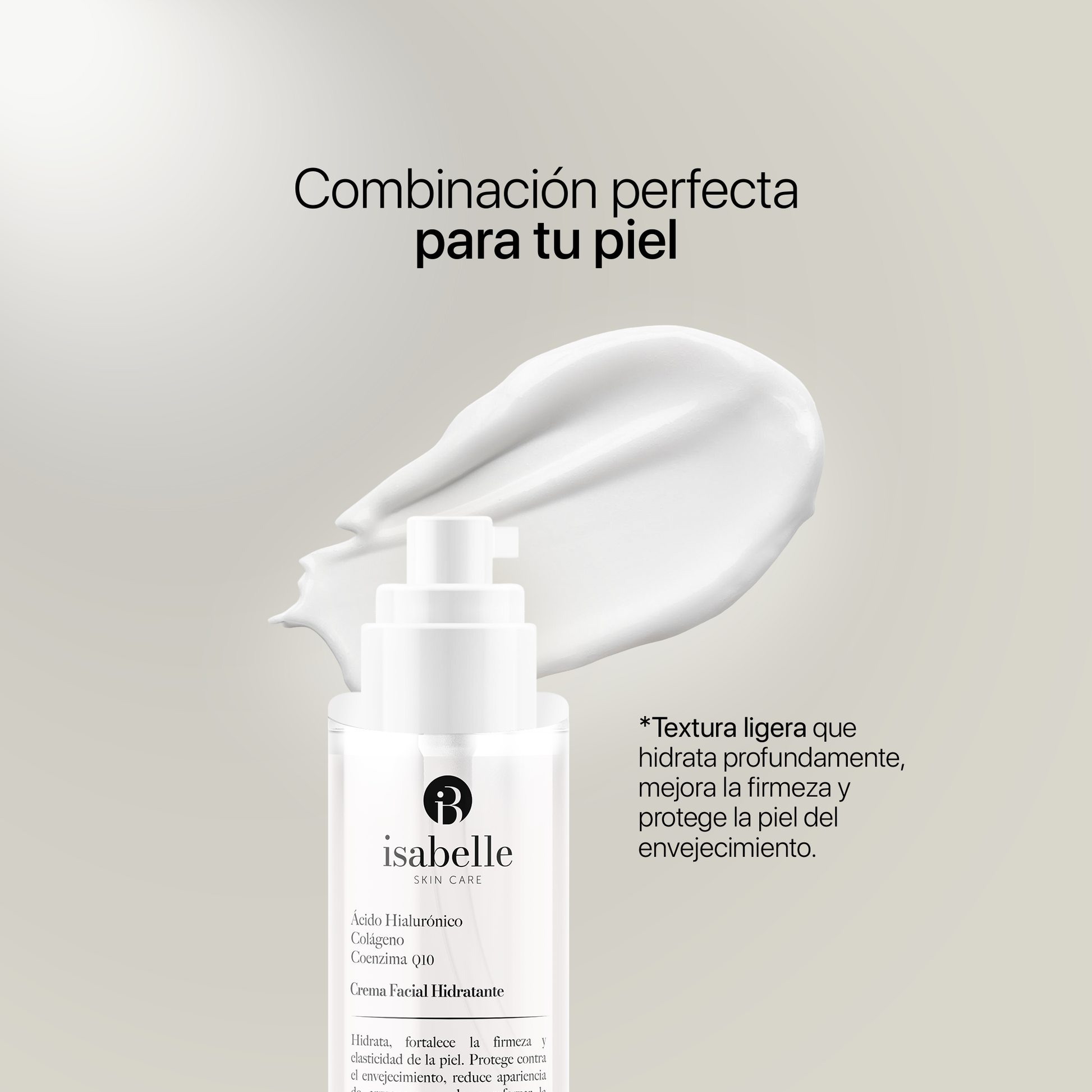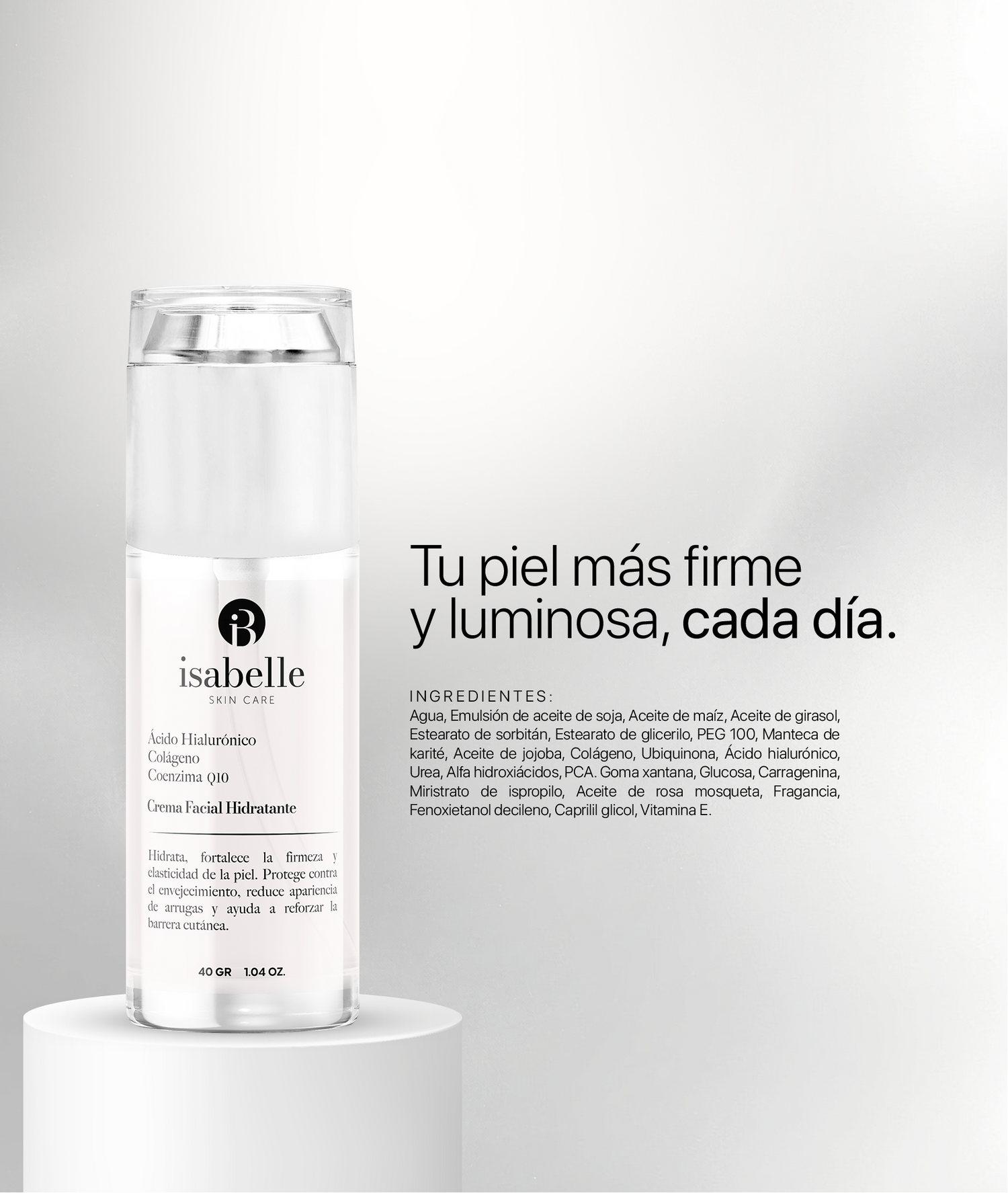 Formulada con una potente tríada de Ácido Hialurónico, Colágeno y Coenzima Q10, esta crema está diseñada para hidratar profundamente, restaurar la firmeza y suavizar visiblemente las líneas de expresión. Gracias a sus propiedades regeneradoras y antioxidantes, ayuda a fortalecer la barrera cutánea, mejorar la elasticidad y proteger el rostro del envejecimiento prematuro.